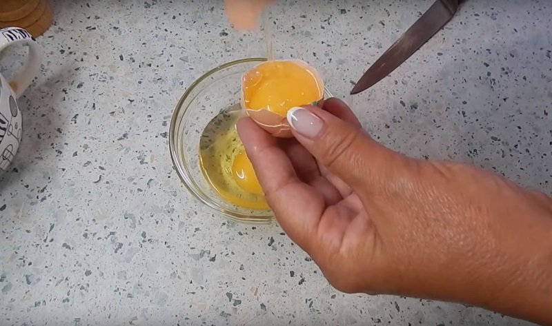 W międzyczasie na drobnym sitku przesiewamy mąkę i mieszamy ją z łyżeczką soli. Teraz czas na jajka. Żółtko z jednego jajka oddzielamy i odstawiamy w oddzielnym pojemniku (warto przykryć je folią, żeby nie wyschło).