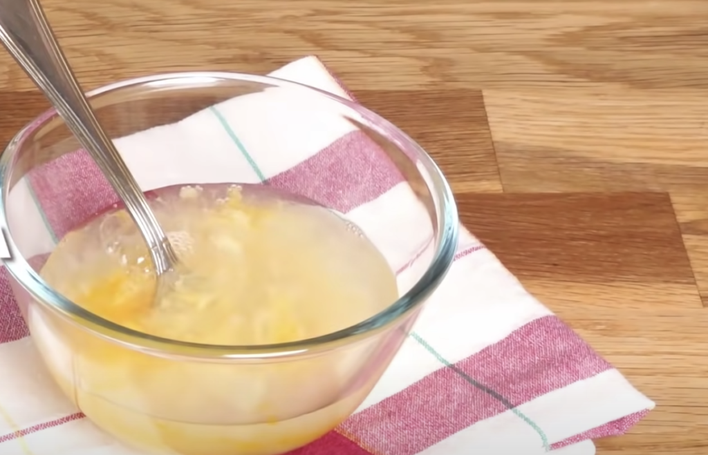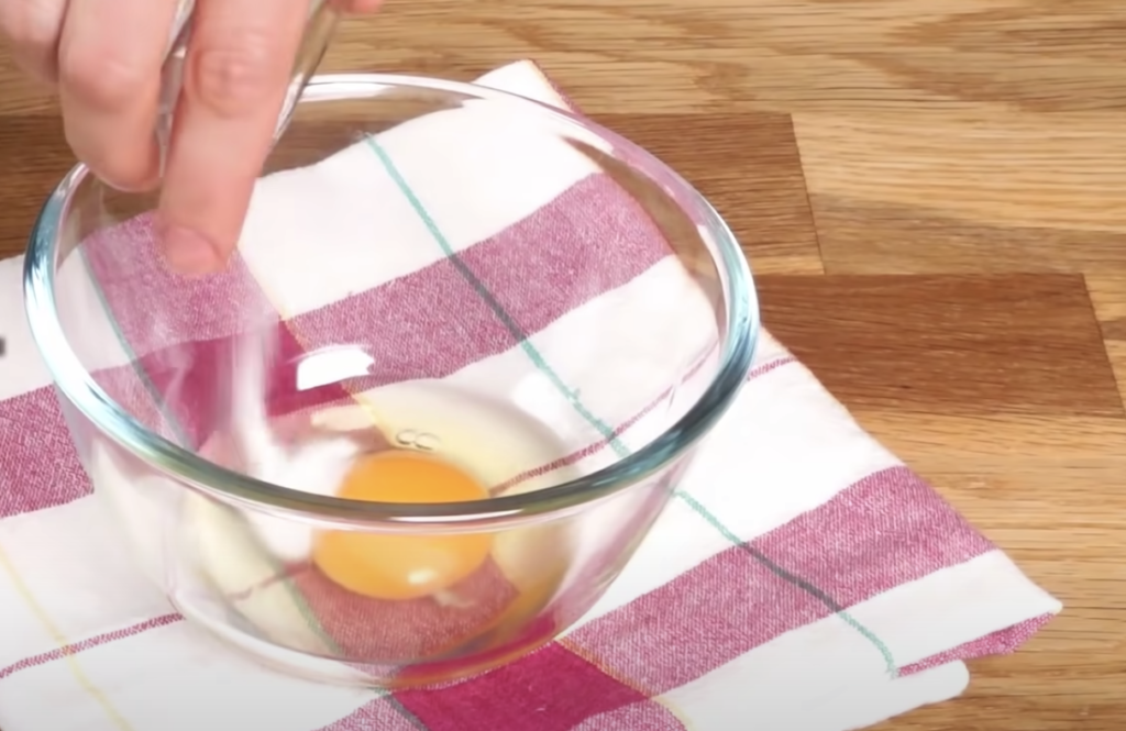 W pierwszej kolejności należy dokładnie wymieszać jajko z solą do momentu otrzymania jednolitej, gładkiej masy.