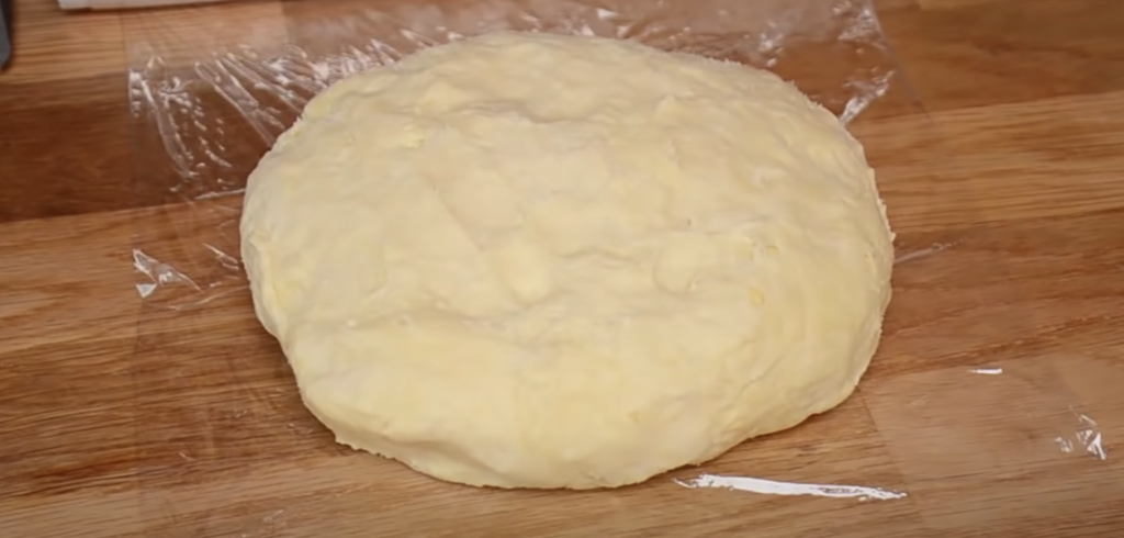 Ciasto wałkujemy. Tak przygotowane ciasto zawijamy w folię spożywczą i odkładamy na 30 minut do lodówki.