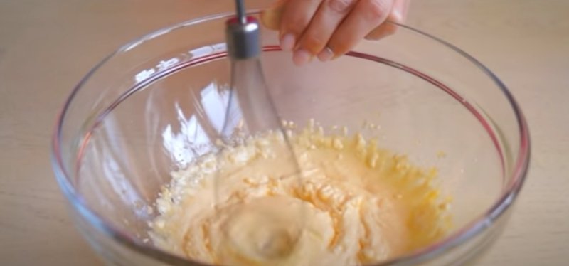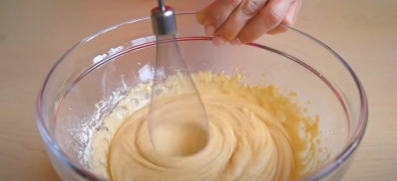 Wymieszaj razem mąkę i proszek do pieczenia. Połącz wszystkie składniki.