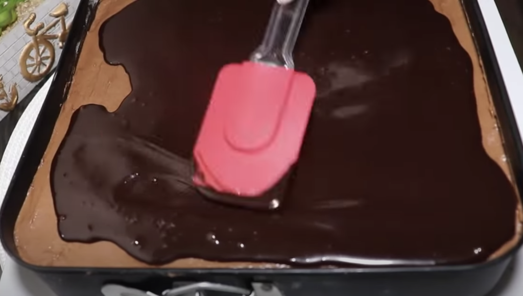 Teraz przygotuj polewę – włóż do garnka czekoladę oraz śmietankę i cały czas mieszając doprowadź do wrzenia. Gotuj tak długo, aż masa będzie gęsta. Następnie zdejmij z ognia, lekko ostudź i polej nią ciasto. Wszystko wstaw na ok. 2 godziny do lodówki.