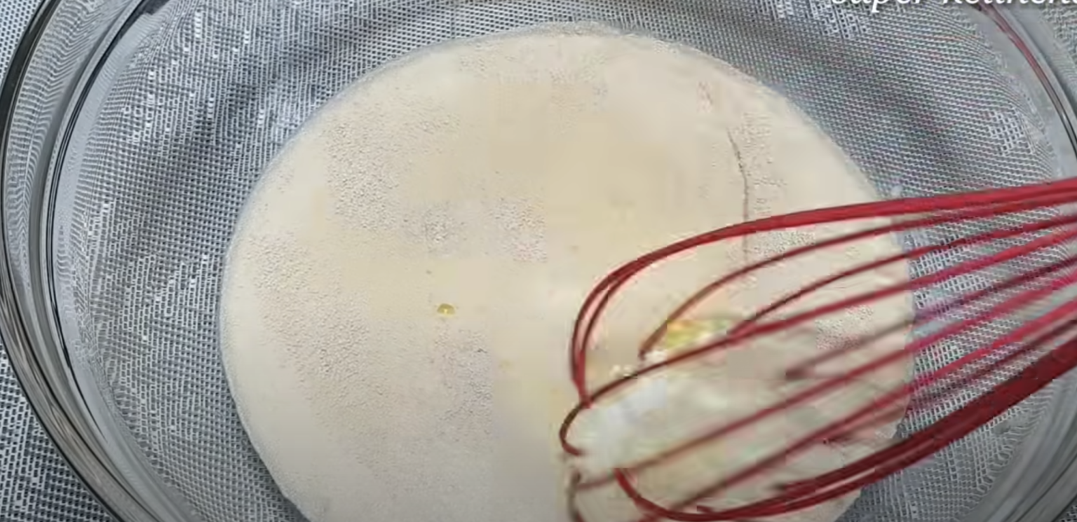 W naczyniu mieszamy ciepłą wodę z mlekiem, solą, cukrem oraz drożdżami, a następnie cały czas mieszając, stopniowo dodajemy mąkę.