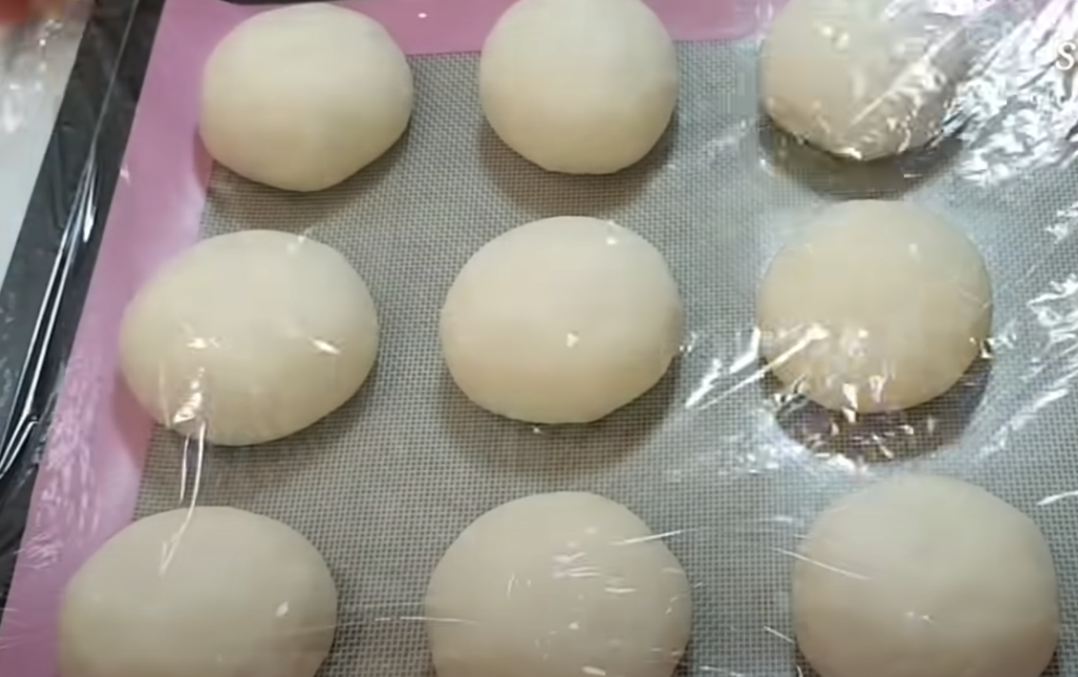 Układamy je blaszce do pieczenia przykrytej papierem do pieczenia i przykrywany folią. Tak przygotowane bułki zostawiamy na około 20 min, czekając, aż dalej wyrosną.