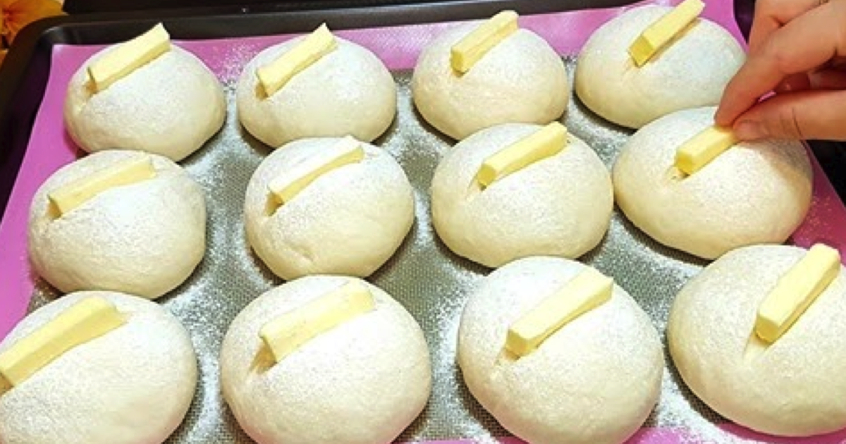 Po upływie tego czasu każdą z bułek posypujemy mąką i nakładamy na nią kawałek masła.