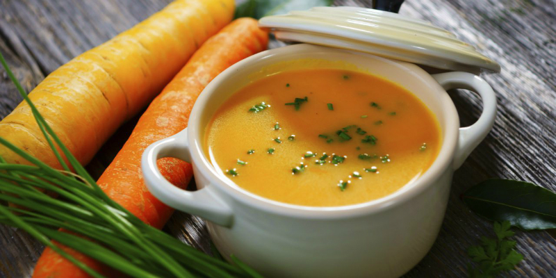 - Zupa krem z marchwi, 50 gram ugotowanej piersi kurczaka.