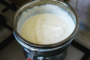 Następnie dodaj wanilinę i mąkę, cały czas mieszając, aż uzyskasz gęstą masę.