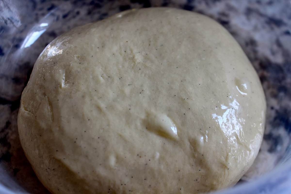 Jeśli zauważysz, że ciasto nadal jest grudkowate, dodaj 20 ml oleju roślinnego. Wyrabiaj ciasto przez około 10 minut. Ciasto powinno być miękkie i lekko klejące. Przełóż ciasto do miski i przykryj folią spożywczą. Pozostawić na 40 minut.