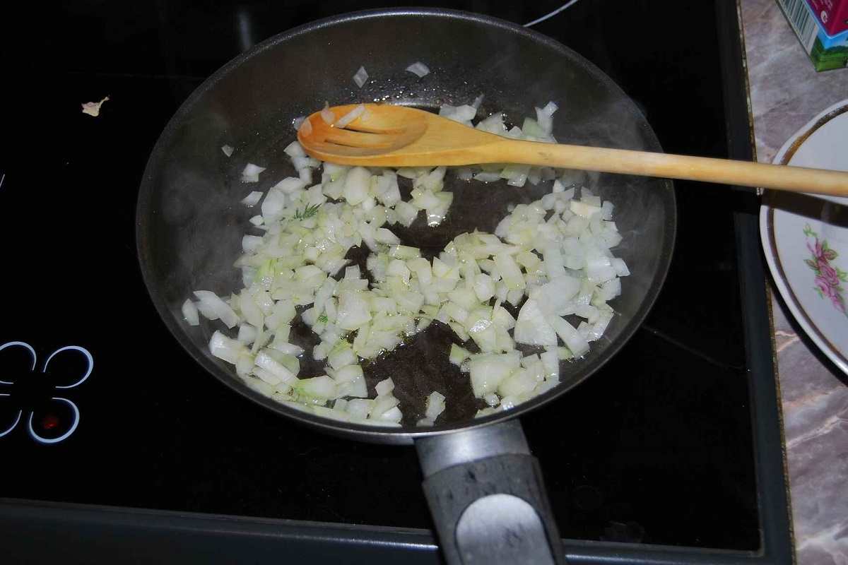 Czas na przygotowanie farszu. Gdy cebula jest już posiekana, podgrzej masło w rondlu, aż stanie się miękka.