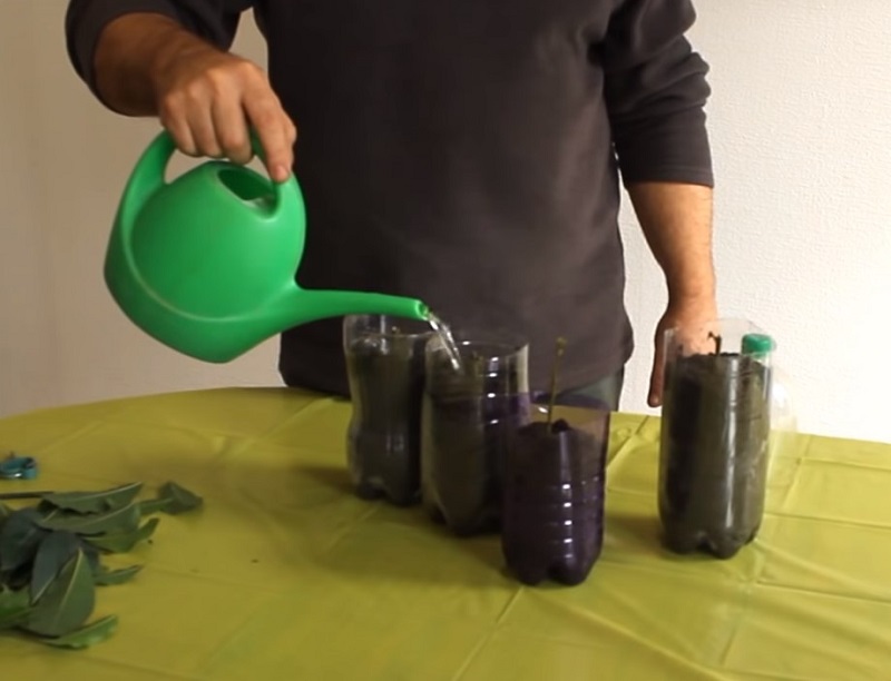 Przecinamy koniec gałązki na skos i zasadzamy łodygę w szklance albo przekrojonej, plastikowej butelce, którą wypełnia mokry piasek. Podlewamy łodygę i przykrywamy ją. Dobrze jest podlewać ją wodą co 2/3 dni. Łodyga może ukorzenić się po trzech, czterech miesiącach i dopiero po tym etapie wskazane jest przesadzenie rośliny do doniczki.
