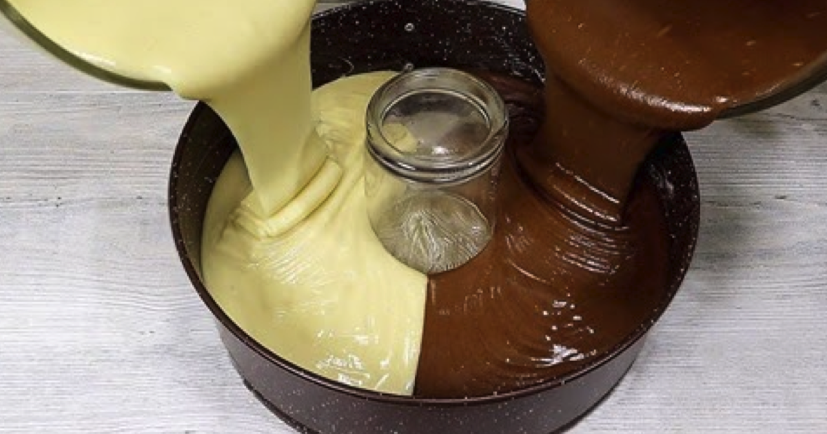 Pyszne dwukolorowe ciasto: wymieszaj, wlej do foremki i do piekarnika. Przygotujesz je w 5 min