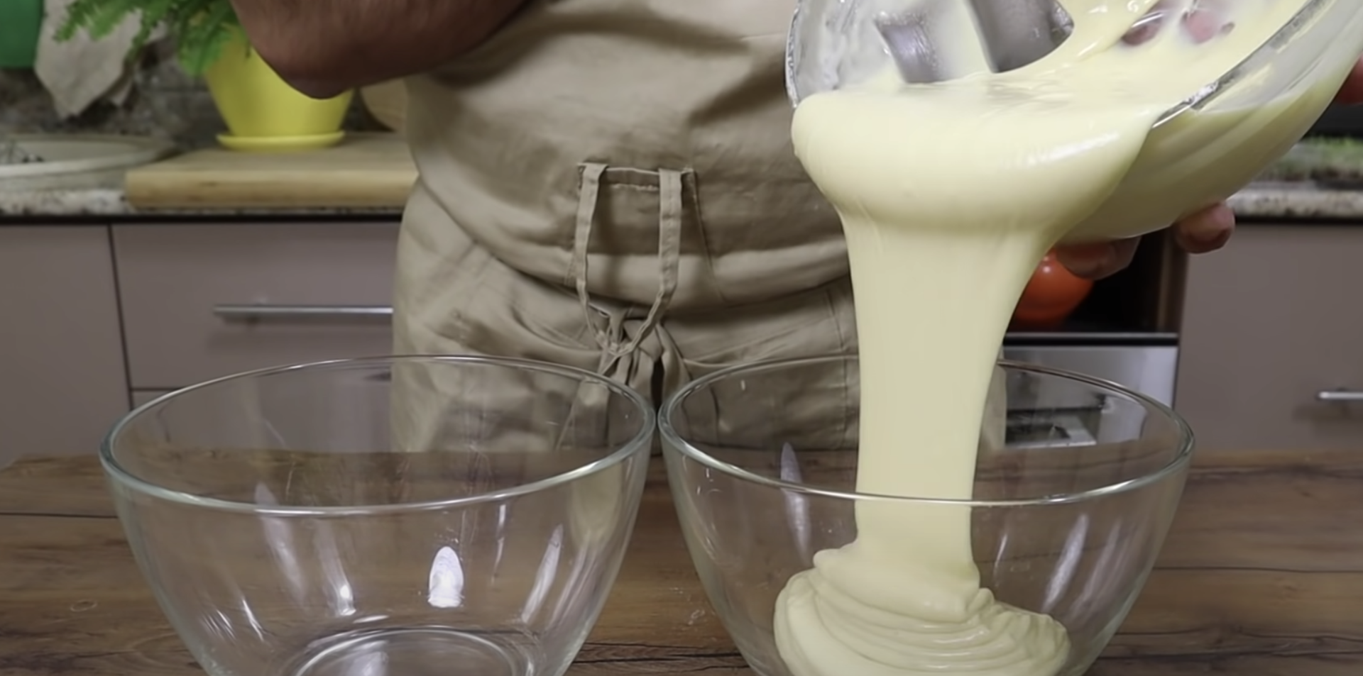 Mleko i przygotowane w oddzielnej misce sypkie składniki dodaj do ubitych jajek. Całość podziel na dwie części.