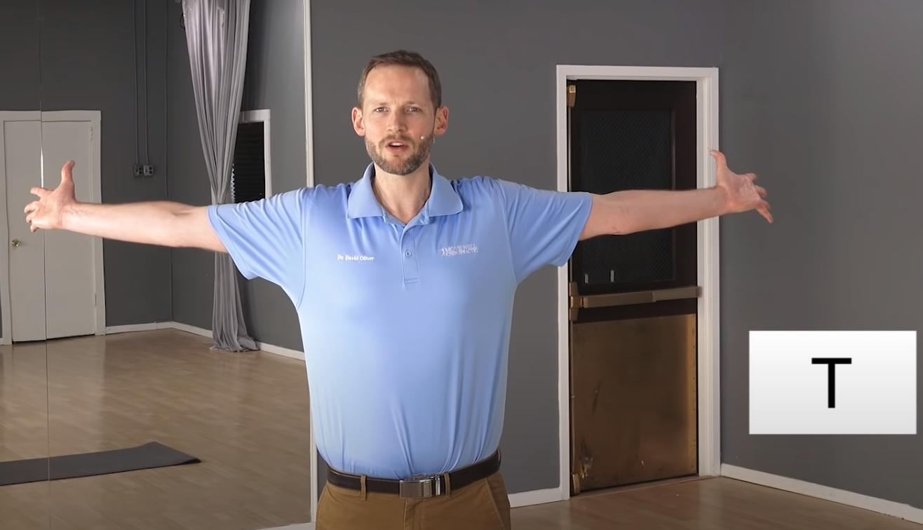 Na koniec podnosimy ręce do poziomu ramion – w kształt litery „T”, kierując dłonie do przodu. Wytrzymujemy pozycję przez 2 oddechy i rozluźniamy ciało.