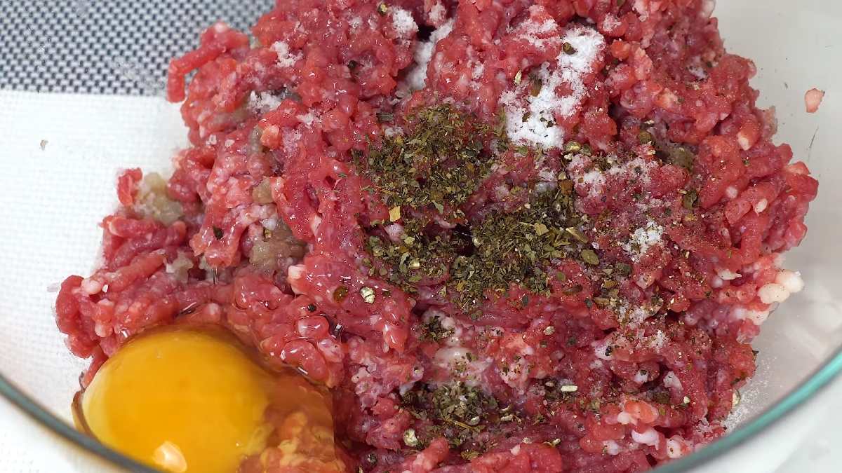 Obrać cebulę i zetrzeć ją na grubej tarce. Następnie drobno zetrzyj czosnek. Połącz pokrojone mięso i warzywa. Wmieszaj jajko, mąkę i olej. Dodaj paprykę, olej, paprykę i tymianek. Dodaj do masy posiekaną natkę pietruszki wraz z 1 łyżeczką soli i pieprzu. Połącz wszystko rękami.