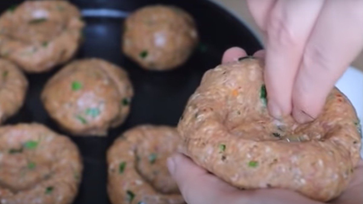 Posmaruj dłonie olejem, a następnie weź niewielki kawałek masy mięsnej. Uformuj masę w kulkę, a następnie połóż ją na blasze do pieczenia. Powtórzyć tę czynność z pozostałą częścią masy. Następnie w każdej kulce zrobić małe wyżłobienie, aby wyglądała jak gniazdo. Piec je w piekarniku nagrzanym do 180 stopni przez 20 minut.