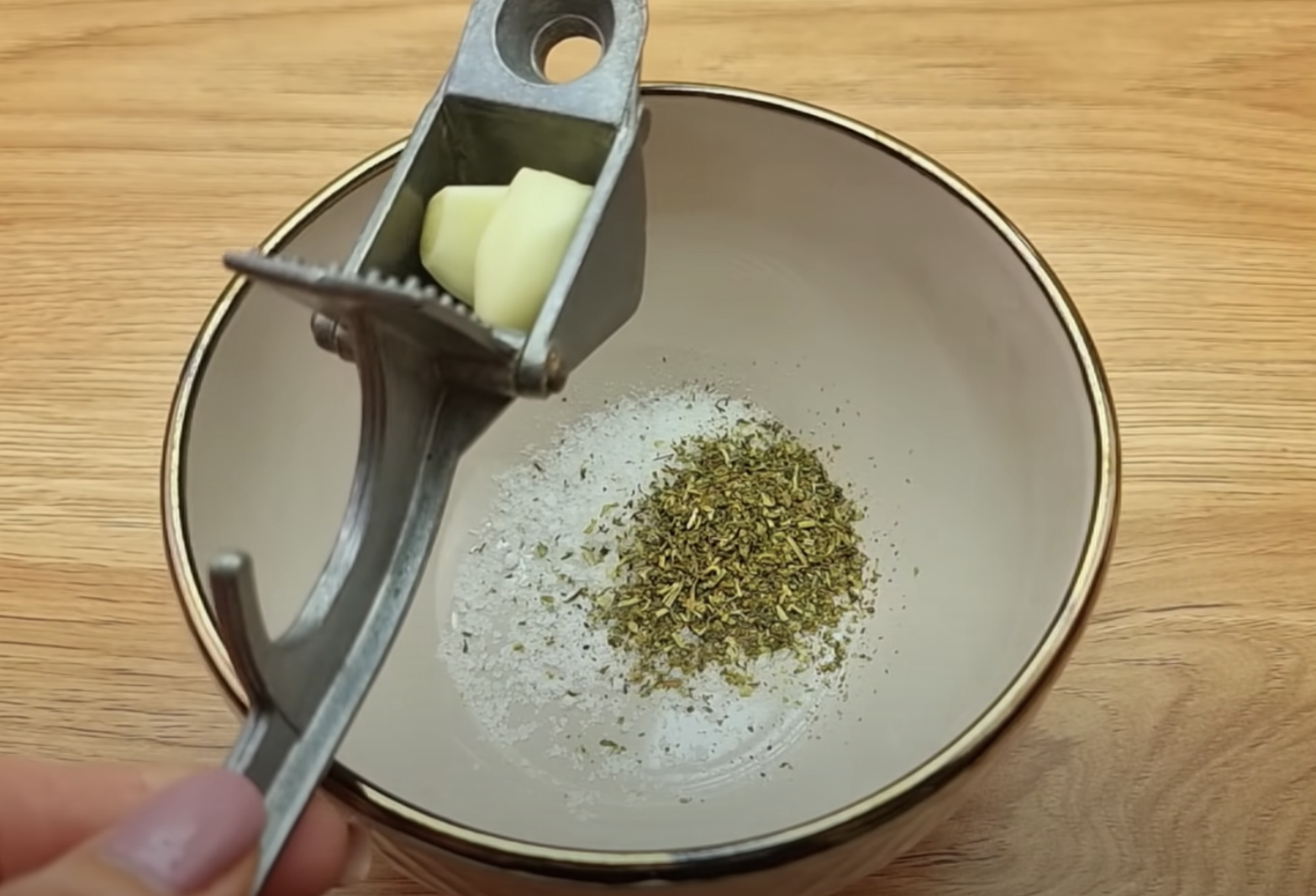 W międzyczasie przygotuj mieszankę przypraw: wymieszaj wszystkie razem z przeciśniętym przez praskę czosnkiem i olejem.