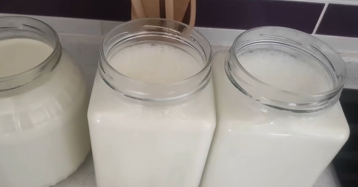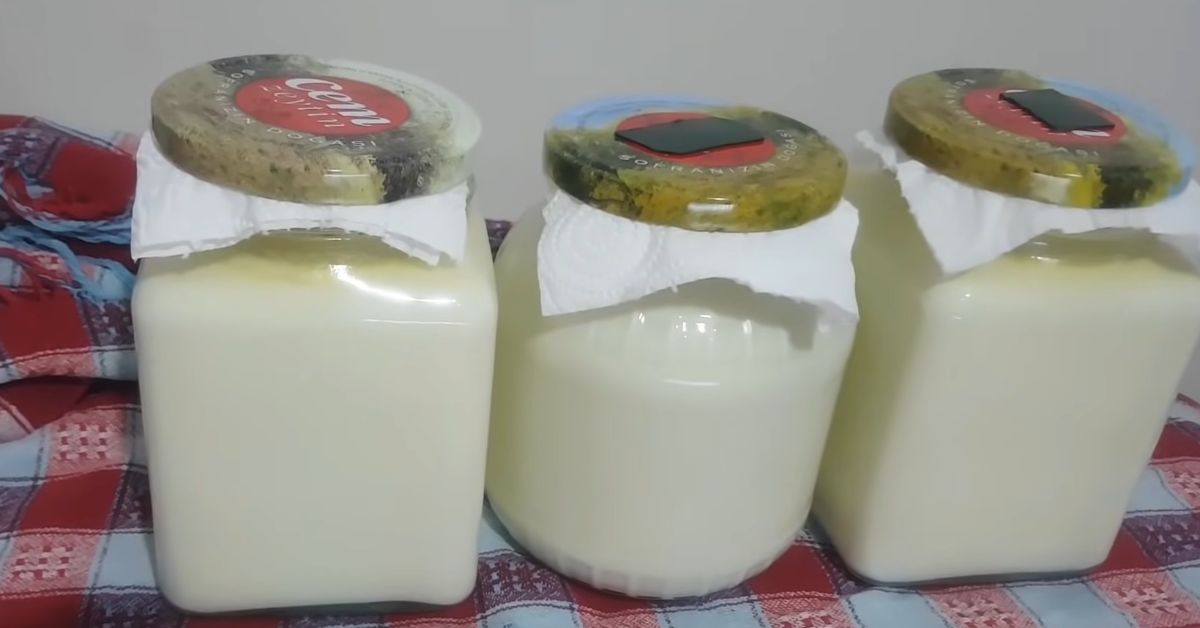 Całość należy dokładnie wymieszać aż do momentu gdy drożdże całkowicie się rozpuszczą w mleku. Tak powstałą masę należy równomiernie rozprowadzić w każdym ze słoików. Następnie każdy słoik należy przykryć ręcznikiem papierowym i nałożyć pokrywkę na wierzch ale nie należy jej dokręcać.