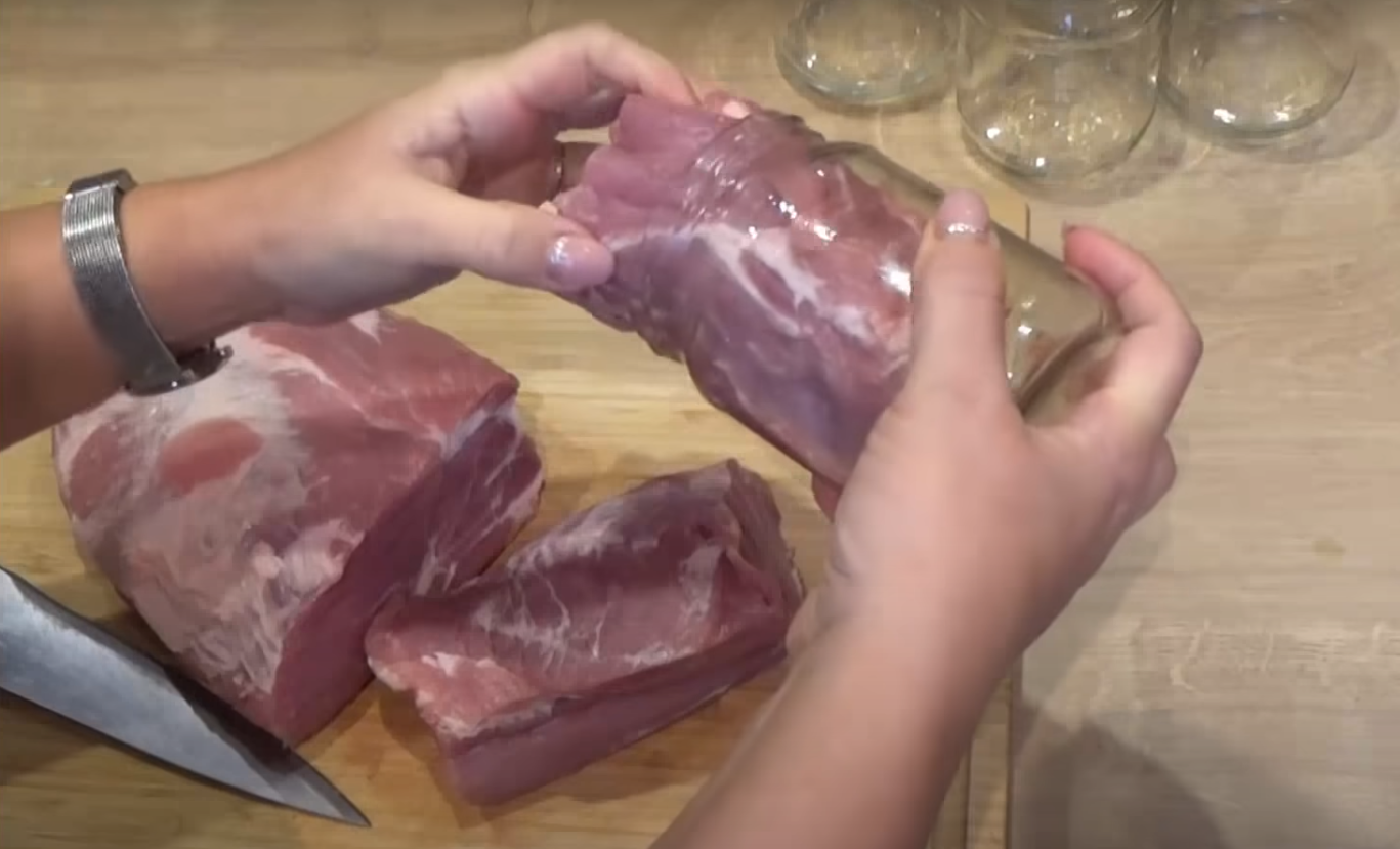 Przygotuj wysterylizowane słoiki i przystąp do obróbki mięsa. Pokrój je do takich rozmiarów, aby zmieściło się w słoikach.
