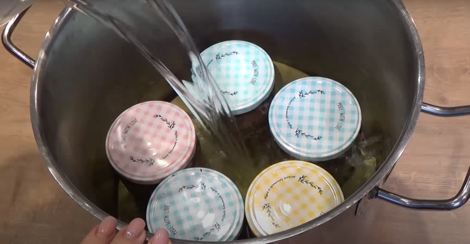 Przechowuj je w lodówce przez 2 dni. Po tym czasie przełóż je do słoików i zamknij pokrywkami. Połóż bawełnianą szmatkę na dnie dużego garnka, ułóż na nim przygotowane słoiki i zalej wodą do 3/4 wysokości słoików.