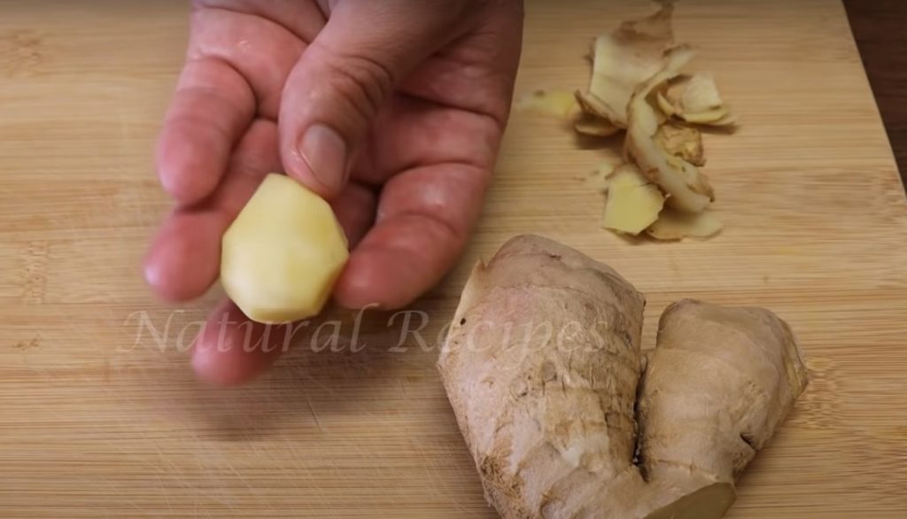 Do przygotowania kawy wystarczy jedna łyżka pokrojonego świeżego imbiru – wystarczy odciąć i obrać kawałek takiej wielkości, jak na zdjęciu poniżej.
