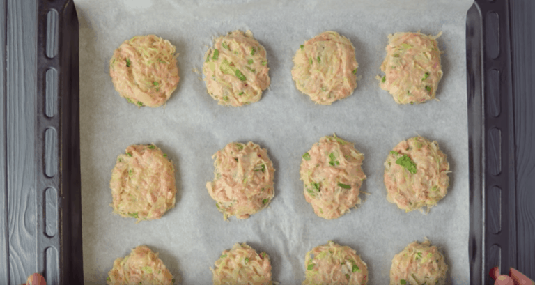 Gdy już mamy wymieszane składniki to dodajemy też do tego kapustę i cebulę. Wtedy trzeba wymieszać wszystkie składniki razem. Ostatnim krokiem jest uformowanie z tej masy kotletów. Ustaw piekarnik na 200 stopni Celsjusza i na foremkę wyłóż papier do pieczenia.