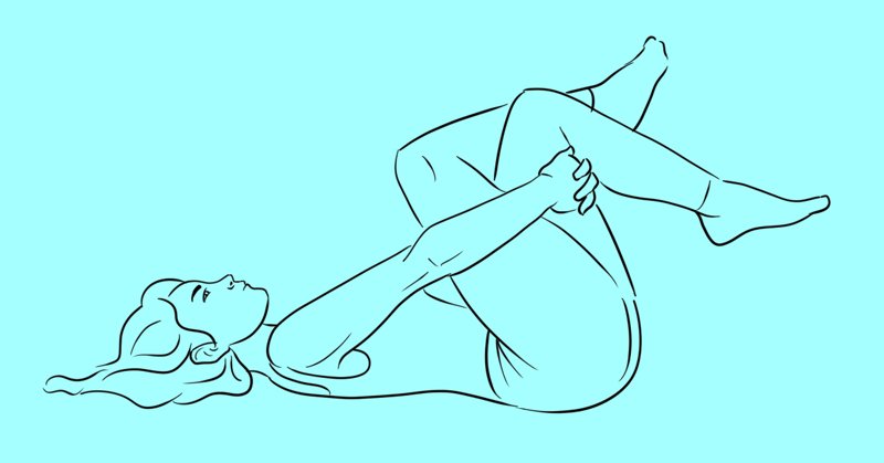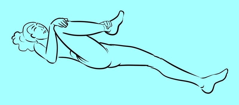 Połóż plecy na równej, płaskiej powierzchni. Skrzyżuj nogi z rękami i zegnij kolana. Tę pozycję należy utrzymać przez co najmniej 30 sekund. Wracamy do pozycji wyjściowej. Możesz powtórzyć tę czynność jeszcze dwa razy.
