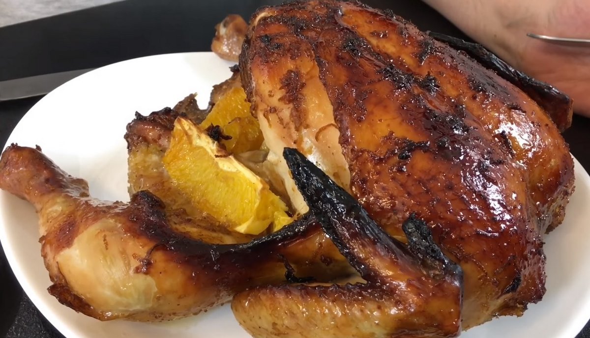 Sekretem przygotowania tego kurczaka jest umieszczenie pojemnika z wodą na dnie piekarnika. Dzięki temu powstaje bardzo wilgotne środowisko, które sprawi, że mięso będzie bardzo soczyste. Skórka natomiast będzie chrupiąca.
