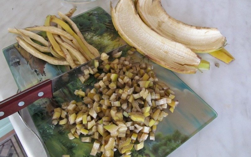 Przygotowanie: Skórę z banana można użyć w trakcie przesadzania rośliny. Skórę należy zmielić lub drobno posiekać i umieścić na dnie doniczki.