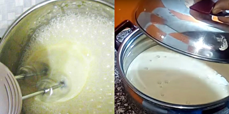 Następnie ubijać masę mikserem lub trzepaczką przez około 1-2 minuty do uzyskania wodnistego ciasta. Przykryć ciasto ściereczką i odstawić na 40 minut.