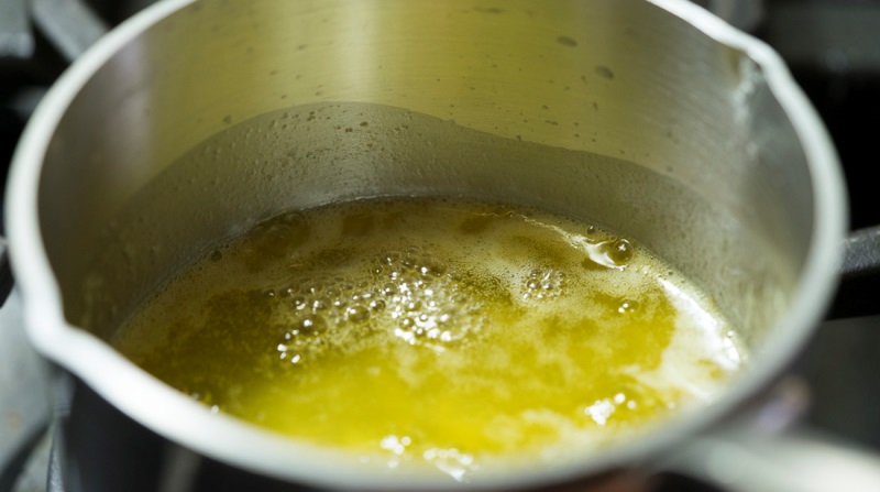 Teraz przyszedł czas na sos. W tym celu roztop w rondelku masło i dodaj do niego miód. Uważaj, aby sos pod żadnym pozorem nie zagotował się!