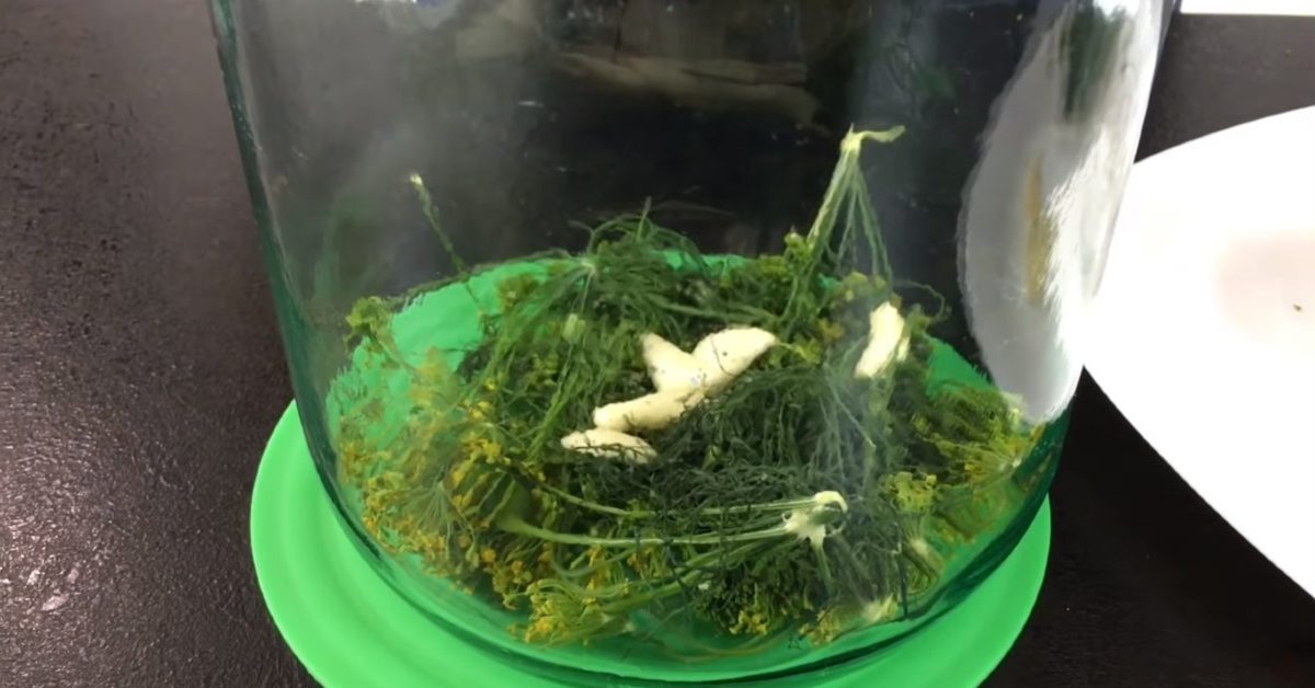 Umieść ogórki w słoiku, a następnie dodaj resztę koperku. Na koniec posypać solą.