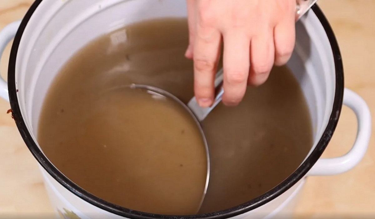 Następnie włożyć brudną patelnię. garnek umieścić na ogniu, po czym gotować jedną godzinę.