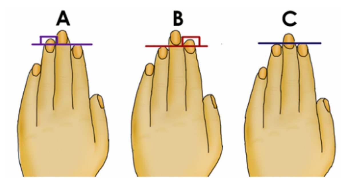 Typ A – palec serdeczny jest dłuższy od wskazującego.