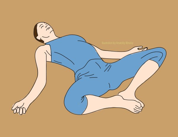 Zwróć uwagę, że nie powinieneś odczuwać w tej pozycji jakiegokolwiek bólu lub dyskomfortu. Jeżeli tak się dzieje, wróć do standardowego leżenia.