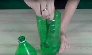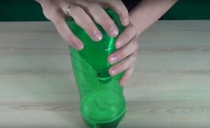 Odciętą szyjkę umieść w butelce do góry dnem. Aby je skleić, można użyć kleju lub taśmy klejącej.