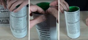 Zawiń butelkę na zewnątrz, używając ściereczki, gazety lub folii. Zabezpiecz krawędzie spinaczami do papieru lub zawiń w gazetę.