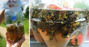 Wlecą one do środka, ale nie będą w stanie wydostać się przez wąską szyjkę butelki lub lepkie ścianki. Utoną więc w mieszance. Do przynęty można też dodać coś słodkiego, np. miód, kawałki owoców lub dżem, i umieścić ją w wyłożonej folią łódeczce.