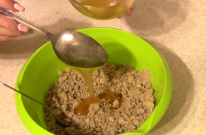 Całość przekładamy do miski. Następnie dodajemy miód i łączymy ze sobą składniki (warto dodawać miód po jednej łyżce i mieszać aby uniknąć zbytniego rozrzedzenia masy).