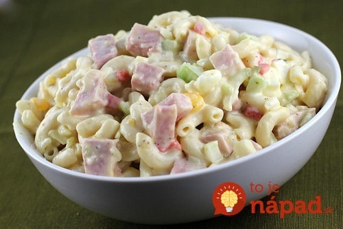 Ugotuj makaron w osolonej wodzie do Al Dente. Szynkę zetrzyj na grubej tarce lub pokrój w kostkę. Drobno posiekaj warzywa. Jeśli używasz sterylizowanej kukurydzy i groszku, odsącz je z marynaty. W osobnej misce wymieszaj biały jogurt z 2-3 łyżkami śmietany i dopraw solą, pieprzem i kilkoma kroplami soku z cytryny.