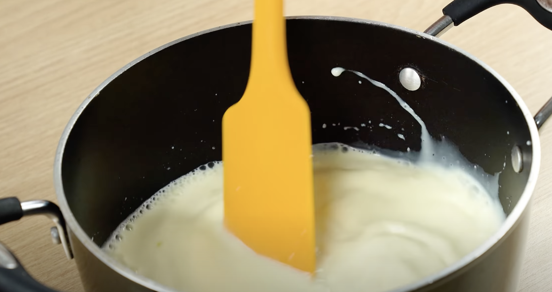 W mleku wymieszaj cukier, skrobię, wanilię i żółtka. Ugotuj z nich gęsty budyń. Przykryj folią i pozwól mu ostygnąć.