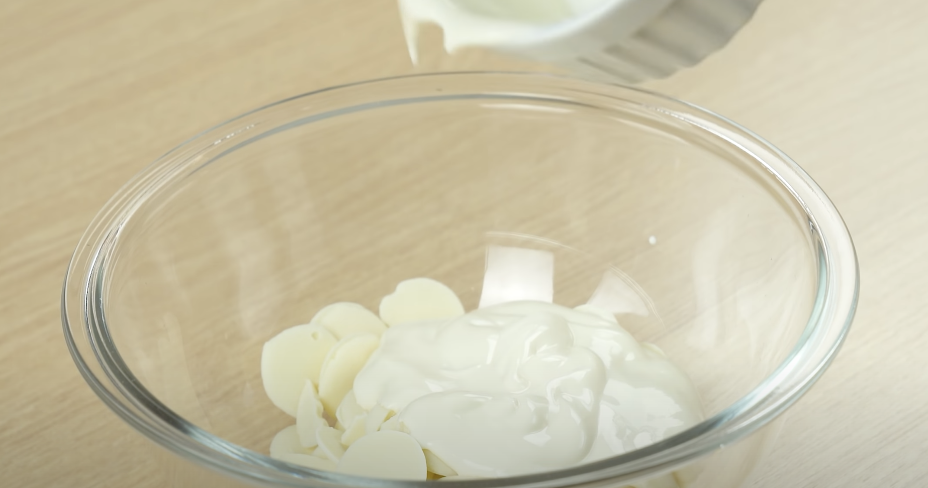 Schłodź deser w lodówce. Białą czekoladę roztop i wymieszaj ze 100 ml śmietany kremówki.