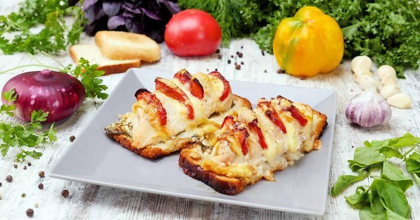 Filet drobiowy z mozzarellą na grzance. Pyszna przekąska, która skradnie serca bliskich oraz wszystkich gości.