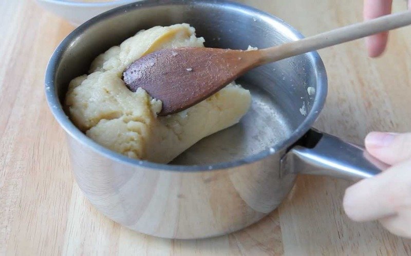 Zdejmij masę z ognia, dodaj do niej jajka i ponownie wymieszaj do uzyskania gładkiej konsystencji. Potem przełóż ciasto do rękawa cukierniczego.