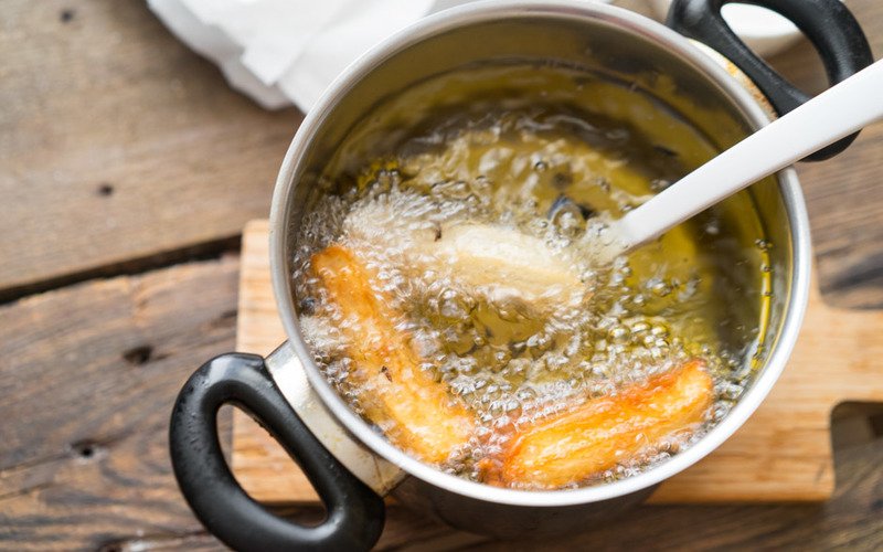 Zabierz się za ciastka. Najpierw wypełnij głęboki garnek olejem, po czym rozgrzej go dobrze. Następnie wyciskaj do środka krótkie, kilkucentymetrowe kawałki ciasta z rękawa. Uważaj, by nie dotykały się wzajemnie! Smaż je z obu stron na złoty kolor, a kiedy będą już gotowe, wyłóż wszystkie na papierowy ręcznik, by odsączyć je z nadmiaru tłuszczu.