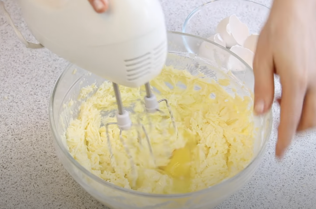 Użyj miksera, aby ubić masło. Następnie dodaj szczyptę soli i proszek do pieczenia. Następnie powoli i stopniowo dodawaj mąkę. Wymieszaj wszystko razem, aż będzie gładkie i jednolite.