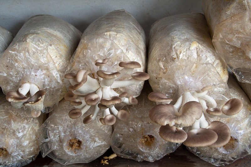 Przez osiem godzin dziennie grzyby powinny mieć też światło. Po 14 dniach pojawi się druga fala grzybów. Łącznie będą 4 fale. Potem bloki można wykorzystać jako nawóz.