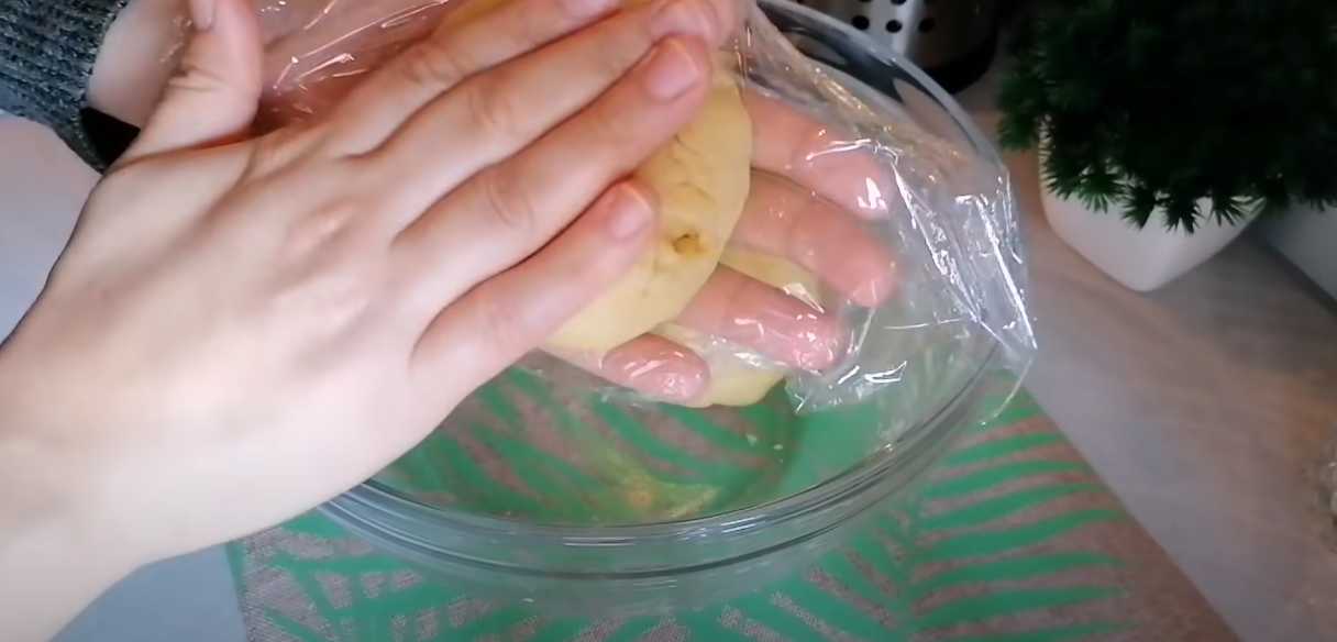 Przygotowane ciasto podzielić na dwie równe części, każdą z nich okręcić w folię spożywczą i włożyć do zamrażarki na 0,5h.