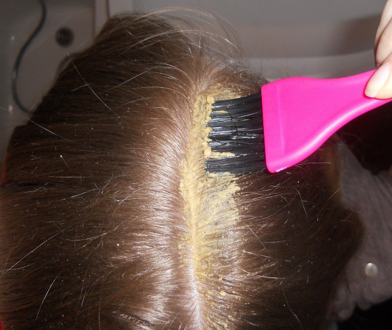 Maskę należy nakładać, dzieląc włosy na części. Przy aplikacji, nakładaj ją także na skórę głowy aby dotarła do cebulek włosów. Zwróć uwagę, aby nie nakładać maski na końce włosów. Po aplikacji mieszanki, nałóż na głowę foliowy czepek oraz zawiń włosy w ręcznik.