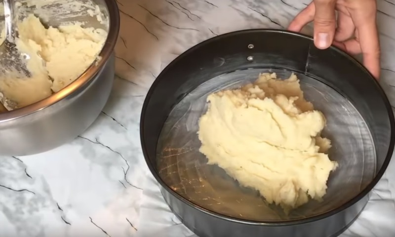 Jeśli okaże się, iż mięso jest zbyt suche to wlać odrobinę – na oko wody. Do ugotowanych ziemniaków dodać masło i przyrządzić je niczym puree. Foremkę z odłączanym dnem od boków wyłożyć papierem do pieczenia, który należy posmarować roślinnym olejem.